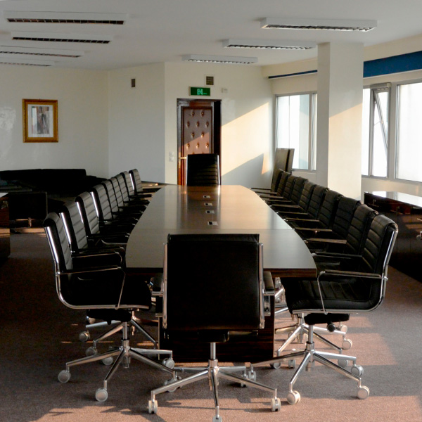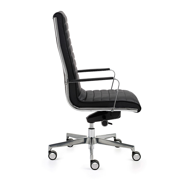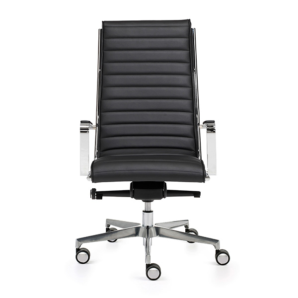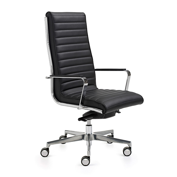 Trinity, la silla del siglo XXI. Sus características líneas rectas y contornos envolventes que se fusionan con la fuerza del acero y unos acabados muy suaves, hacen de ella una silla direccional perfecta.